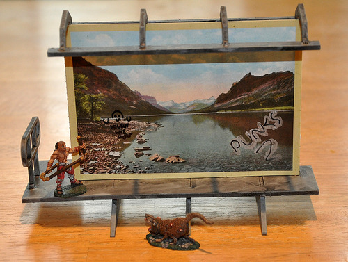 der awesome. Bradley Eng-Kohn wanted a billboard stand for his miniatures games that could fit a postcard. Since he runs a laser-cutting company, he made one!