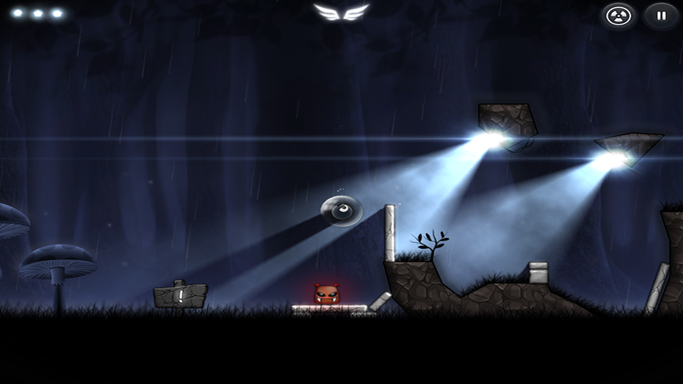 Lums costs $0.99 on the app-store, and it comes with in-app purchases. Players have the option of using real currency to buy nukes— it's still undetermined if they're more cost-effective than holy water—and the remaining level sets, should they choose not to unlock them the old fashioned way. All of these are meant to help if players become stuck. Nukes, which are available for free in limited quantity, are capable of ending the curse of darkness. Simply beating each level isn't enough to make it to the next set of levels, as I had to collect enough stars to unlock the rest of them (three in total). It is a little unfair to charge players two more dollars despite claiming that the full version only costs $0.99; however, keep in mind that simply playing to beat a level isn't challenging or rewarding. Players will spend lot time trying to master the game's physics while collecting all three stars per level in just the first set alone.